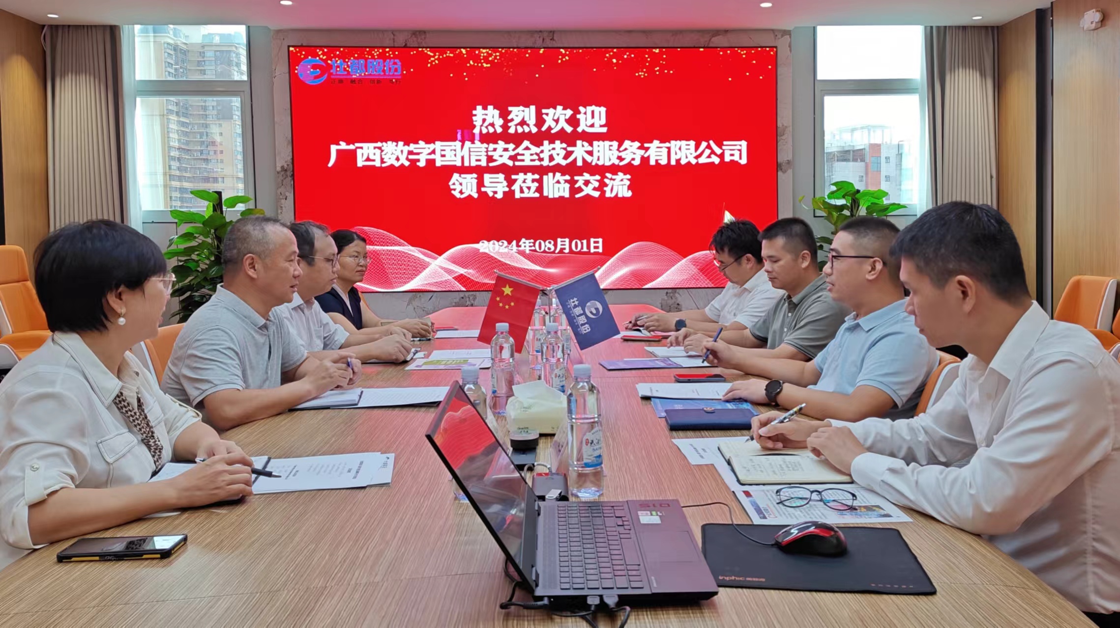 壮都股份副总经理黄耀磷、蒋荷军,数字国信副总经理孙贵承、江惊霞,以及双方相关部门负责人参加了签约座谈活动。
