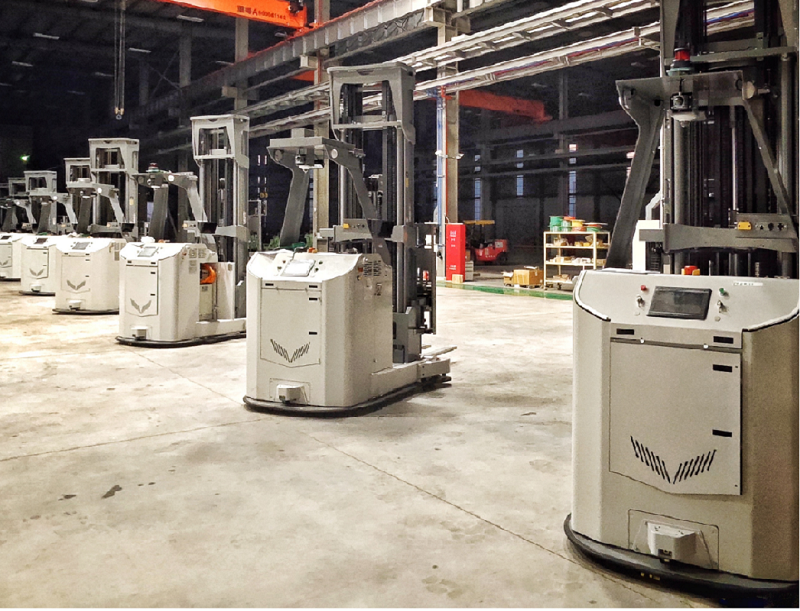 系统组成:主要包括叉车车体平台,激光SLAM融合导航系统,中央调度控制台,任务执行设备与配套保障设备,全系统包括一车一控(或多车一控),在大载重与高举升场景中具有极高的表现性能,其运行通道需求满足各行业现有仓库布局,是仓储物流场景中常见的产品类型之一。